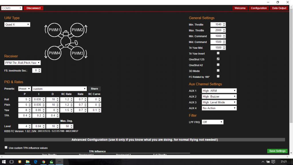 Klaus hast du direkt Airmode geproggt ? Pass auf mit den Rates auf Roll. Kommst du nah an 1 bekommst du nen Flip über Roll nicht mehr in den Griff. Der dreht wie irre dann.Zitat von Snake Beitrag anzeigenGruss, Michael