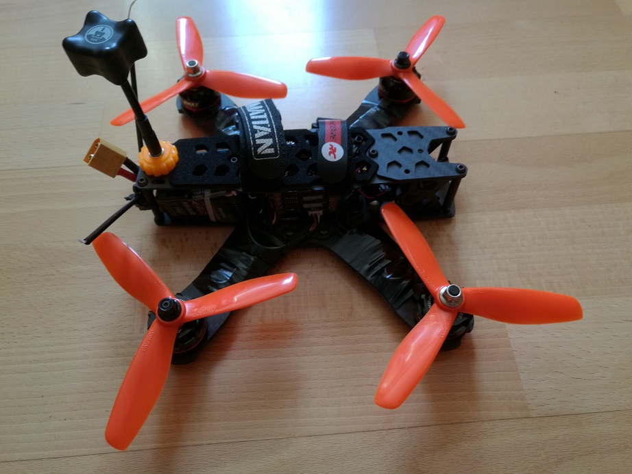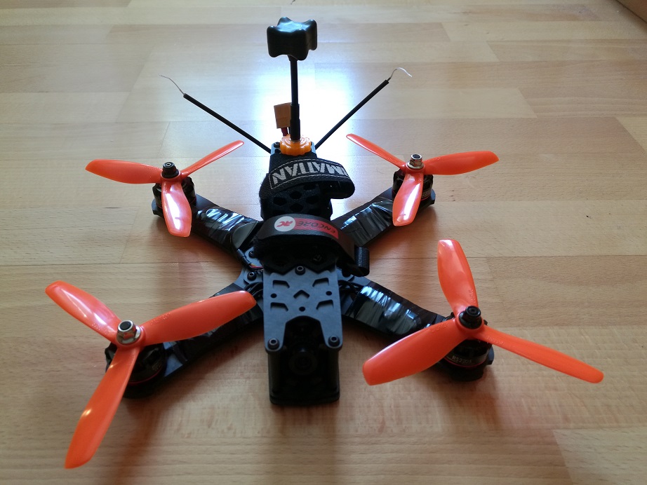 mein Qav-X wiegt flug fertig ohne lipo und gopro 320gr