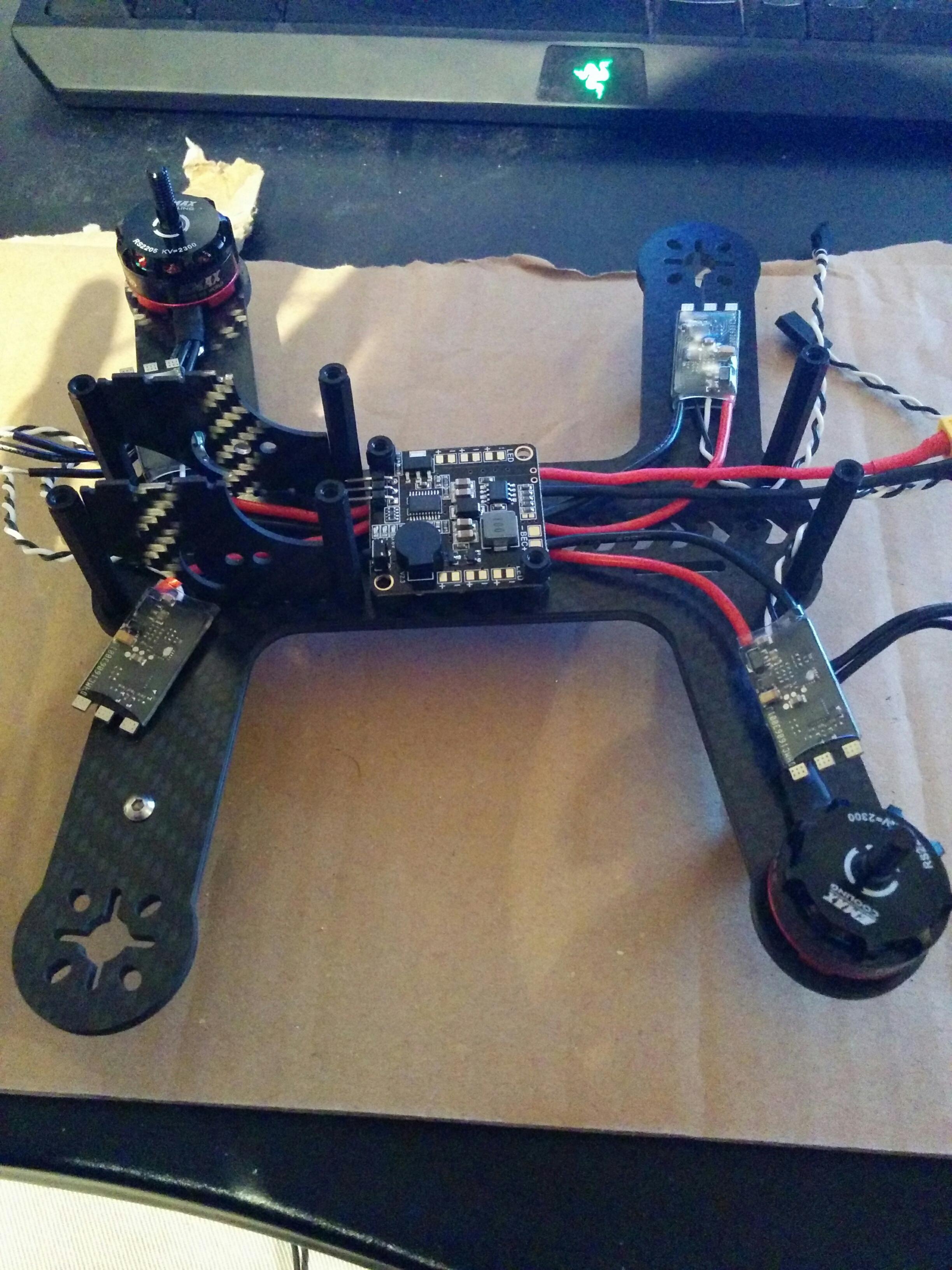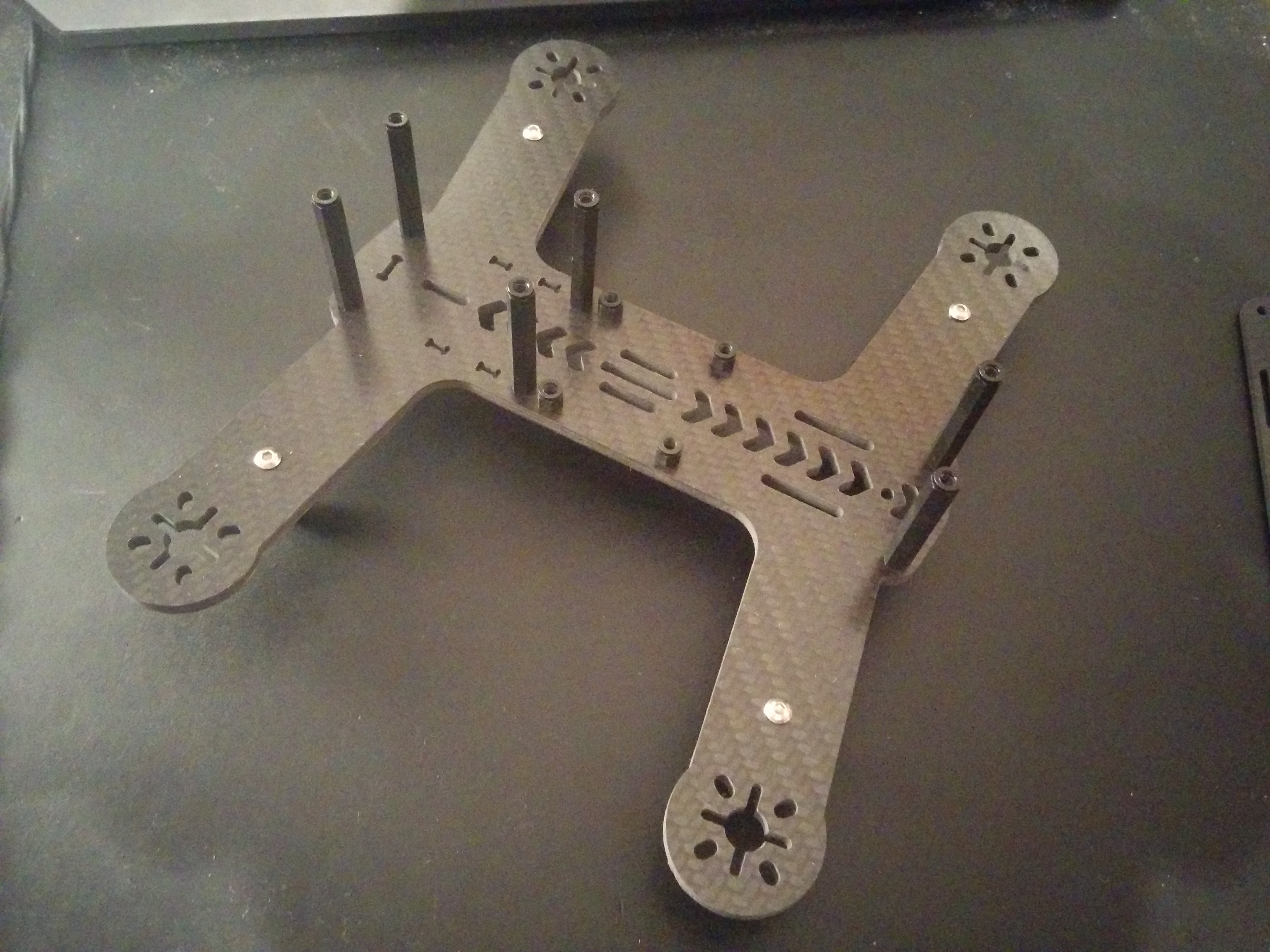 Ich habe also den Rahmen vom restlichen Pulverstaub befreit und die ersten Teile angeschraubt. Allerdings nur die, welche auch jetzt schon nützlich für den weiteren Aufbau finde. Also die Säulen für den Deckel und die Füße für Frame und PDB.