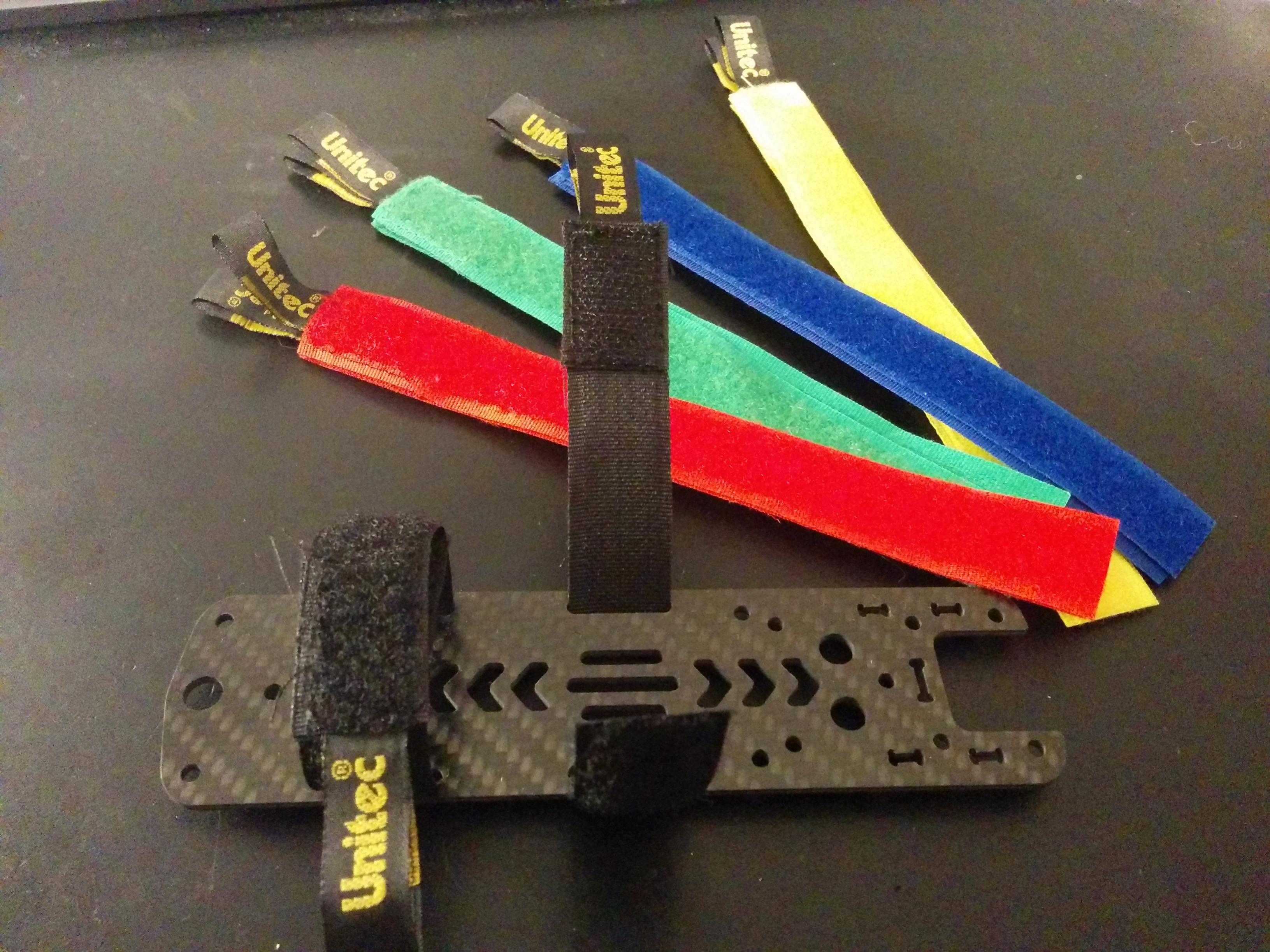 Außerdem war ich im Baumarkt und habe mich mit Kabelbindern, doppelseitigen Klebeband, Klettband und Lipo Straps eingedeckt. Falls ihr demnächst mal wieder neue Lipo Straps benötigt dann könnt ihr mal nach Unitec Klettbändern schauen. Die sind eigentlich zum Kabel zusammenbinden gedacht aber sind auch passgenau Lipo Straps für den Rush 210. Gehen echt mm genau durch die Ausschnitte im Rahmen und sitzen dadurch super.