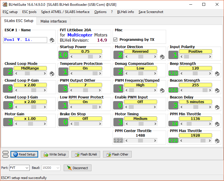 In Verwendung habe ich die LittleBEE 20A Opto V14.9 mit dem GR18 Version Q05.