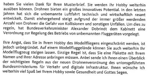 AW: Neue Luftverkehrsverordung von Dobrindt... Gegenmassnahme