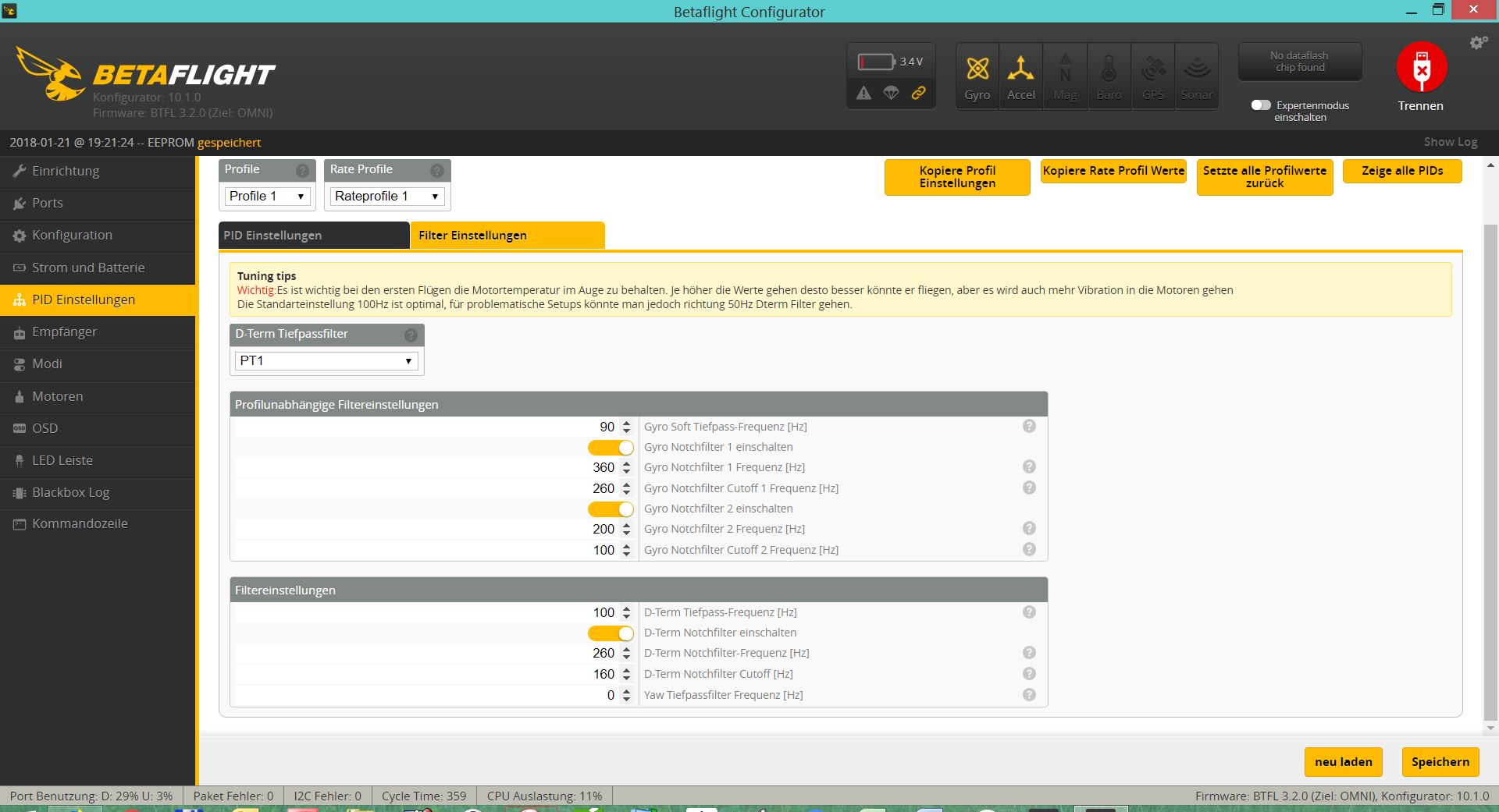 ) auf zu hohe pids hin. sie jittern sich heiss duch falsche Regelung. kannst ja mal deine Komponenten aufschreiben und ein screenshot deiner Einstellung machen.