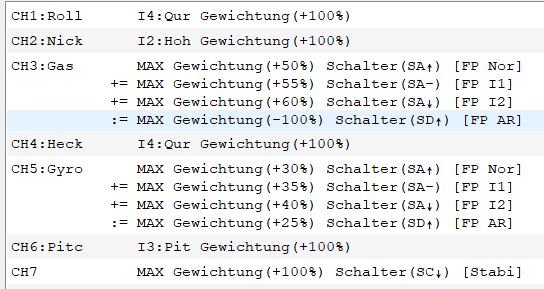 Schöner ist es, wenn man die Schalter im Tab Flugphasen hinterlegt und in den Mischern dann einfach die Flugphase angibt-