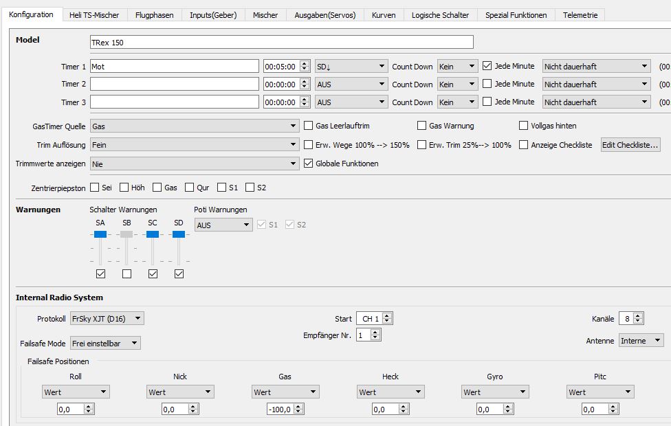 Im Prinzip brauche ich nur 3 Flugphasen. Timer auf Motor an/ aus und einen Kanal für die Flugmode Umstellung von Safe auf 3D.TDR-2011/ Logo 200/ RAW 420 Competition/ Airwolf