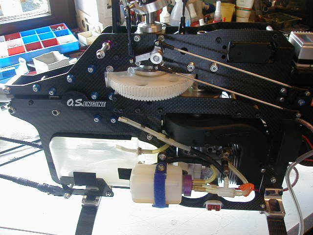 Da die Fa. CARBONEXTREM sehr harte 2mm CFK Seitenplatten und auch für die anderen Carbonteile diese Stärke verwendet,kann man das sehr schmal gehaltene Chassis nicht mit grober Gewalt verwinden,weil!!!-die Lagerblöcke und die Abstandshalter die ganze Sache extrem steif machen..Der Motor sitz sehr hoch ,dadurch wird eine sehr schnelle Rollrate erreicht und durch die sehrt schlanke Haube ist dar Heli