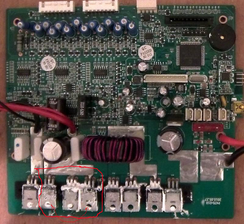 Ist etwas tricky auszulöten, da fette Leitebahnen die die Wärme abziehen. Daher am besten die defekten FETs erst mit dem Seitenschneider abschneiden und die Beine einzeln auslöten. Ich habe eine professionelle Entlötstation mit der ich die Löcher dann schön freisaugen kann, geht aber auch mit einer normalen mechanischen Entlötpumpe. Von einer Seite erwärmen, von der anderen absaugen. Wärmeleitpaste bei der Montage des Kühlkörpers nicht vergessen.