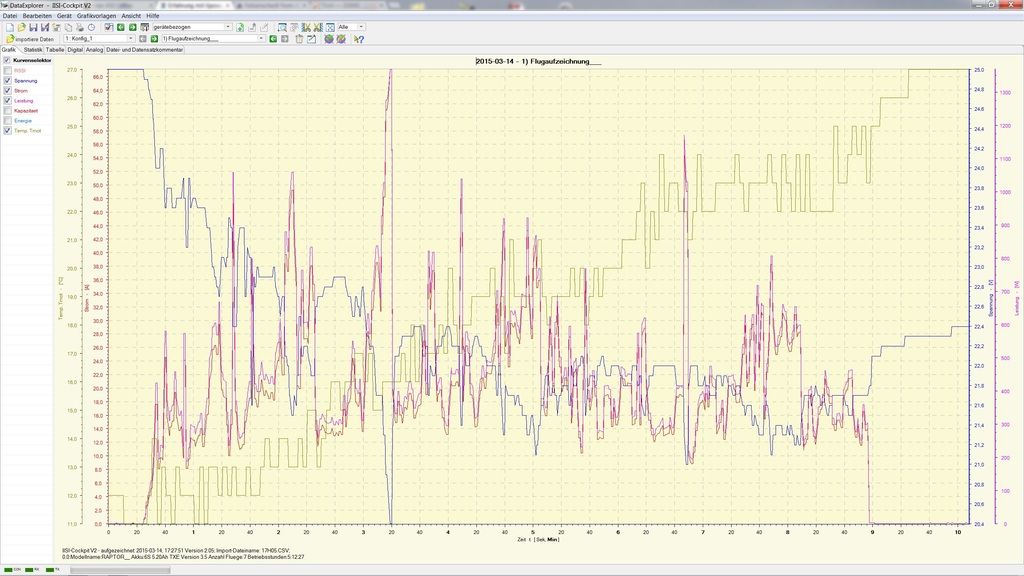Ich würde schon auch sagen, das die Spannungseinbrüche ganz schön heftig sind. Interesant wäre ja noch der Temperaturverlauf des Lipos. Hatte der nach dem Flug keine dicken Backen?