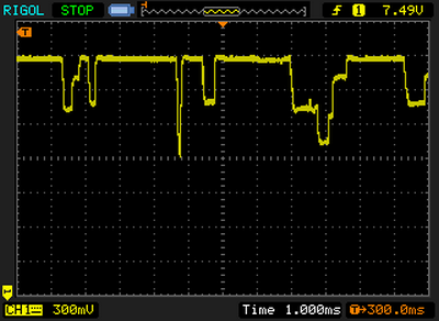 Mit nur der Jive BEC ist ein ßberschwingen der Spannung zu sehen (ist ja klar eine Reglung am Arbeit). Das ist mit der Puffer verschwunden. Mit nur der 1300mAh Lipo ist der Performance auch ganz gut, aber natürlich keine Redundanz.