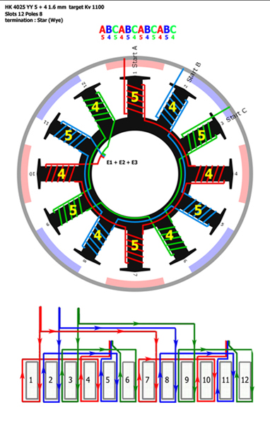 Es handelt sich genau um einen HK-4025 mit 12N8P. Das Einzige Wickelshema das ich ich gefunden habe ist ein ABCABCABC YY Sternverschaltung: