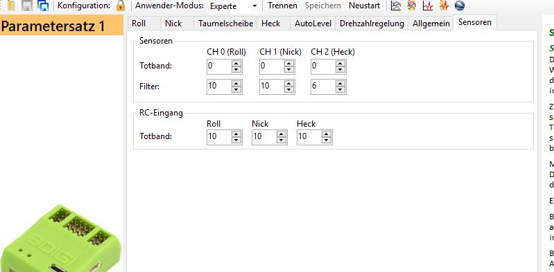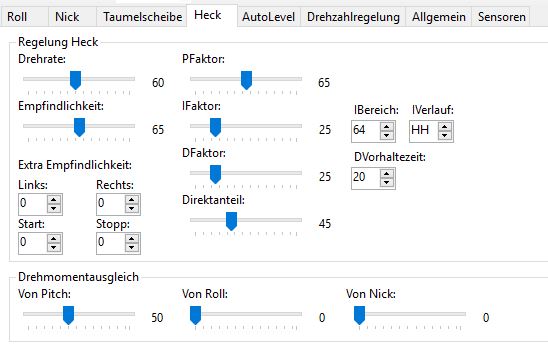 Bist du dir da sicher? Steuert das Heck in die richtige Richtung dagegen, wenn du den Heli bewegst?Zitat von Rotorix Beitrag anzeigenDie Wirkrichtung vom Heck ist korrekt
