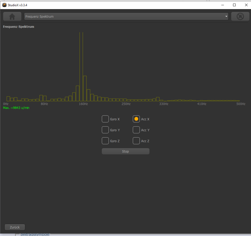 als Heli-Anfänger habe ich gestern den AttitudeControl mit StudioX V3.3.4 in meinem neuen LOGO 600SE programmiert ("Rettung mit Pitch") und am Abend getestet. Zunächst schien alles gut zu funktionieren, (abgesehen davon, dass ich etwas zu viel Pitch im Rettungsfall eingestellt habe). Nach ca. 9 min rumschweben wollte ich die Funktion nochmal testen, und die Folge war widerholbar, dass der Hubschrauber mit ca. 15° seitlich links wegkippte. Er verlor wohl den künstlichen Horizont, wie es heißt. Daraufhin begann ich heute mit der Analyse-Funktion von StudioX nach der (Vibrations?-) Ursache zu Suchen. Benneswerte Temperaturunterschiede gab es keine. Leider findet sich zur Bedienung der Analyse-Funktion sehr wenig Information im Internet, oder gar bei -= BEASTX - BE ABSOLUTE STABLE =-. Was ich an dem "Frequenz Spektrum" in StudioX oder StudioXm vermisse, ist die Skala an der y-Achse. Es is unklar, ob Maßnahmen Amplituden senken, oder sie steigern. Ich weiß nicht, was der Entwickler sich dabei gedacht hat.