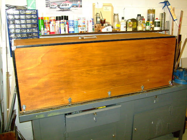 Grundplatte ist 9mm Siebdruckplatte, die Haube 4mm Pappelsperrholz(Teakgebeizt und geölt) mit 12er Kiefernleisten verleimt und genagelt.
