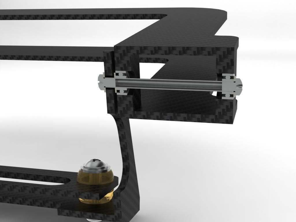 Fuer die Lagerung bzw. Aufhaengung des Kamerastandes in der Gabel habe ich die Blattlagerwelle des 250iger in Betracht gezogen und damit auch gezeichnet. Nun muss ich aber festellen, dass ich kein Riemenrad finde dessen Bohrung 2,5 mm ist, kleinste Bohrung bei Maedler Riemenraedern ist 3,5 mm.