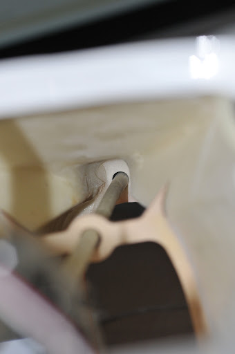 Die Führung der Flexwelle stimmt Haargenau mit den Spanten überein und somit mussten wir nur ein Loch in den Rumpf bohren, da wo das Heck angebracht wird.