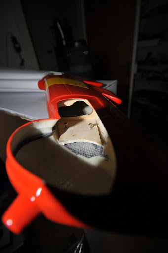 Die letzten paar Tage haben wir damit verbracht, jedes Loch, dass etwas zusammen hält mit einem Holzstück zu versehen, resp. einzuharzen. HeRo Abdeckung, Heck zum Rumpf... In jedes Hölzchen wurde eine Gewindeeinschlagmutter fixiert. Das Fahrwerk wurde verbessert angebracht und das Höhenleitwerk befestigt und ein Bowdenzug montiert, damit das Servo für Gier zusammen mit dem Höhenruder 1:1 angesteuert werden kann