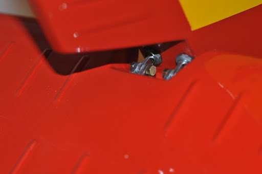 Wie schon vorgehend erwähnt, wurden die originalen Scharniere des Elevator durch Augenschrauben ersetzt und diese und die zuvor eingehartzen alten Kunstoffstifte eingeklebt. Die seitliche Bewegungsfreiheit wurde damit um einiges eingedämmt!