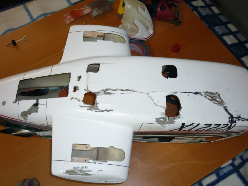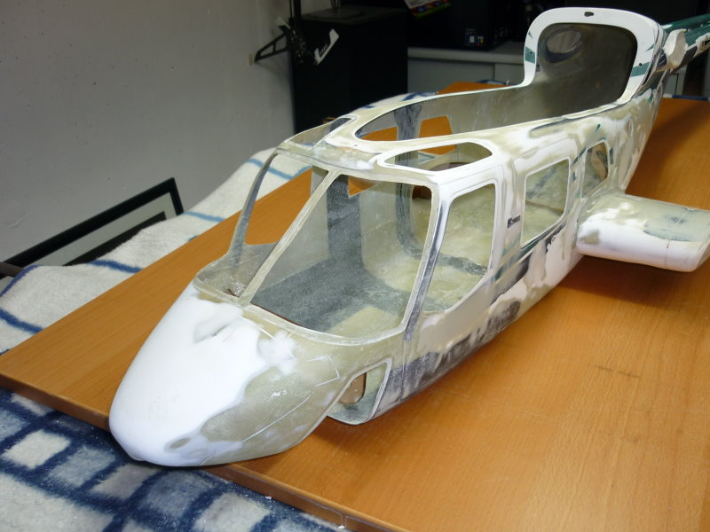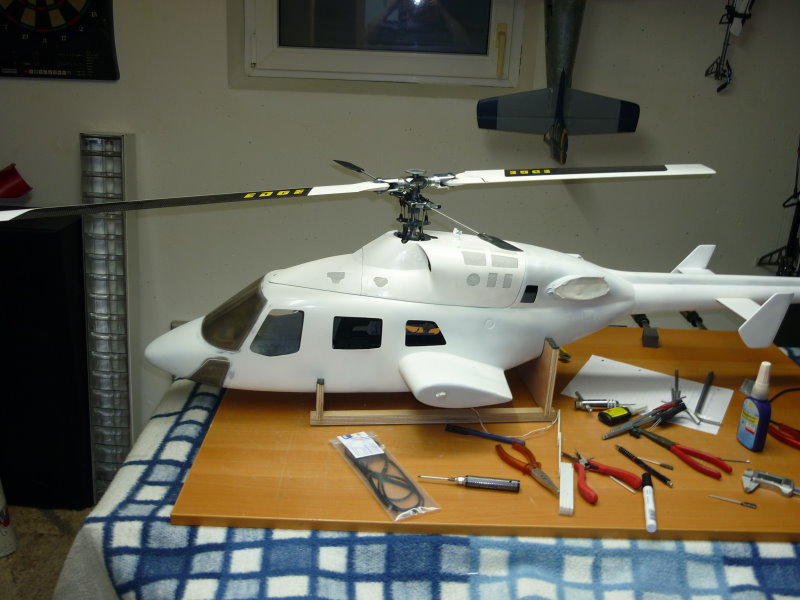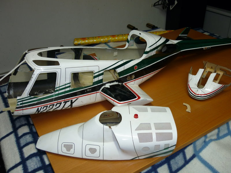 Der Anfang war eigentlich recht einfach . Ich habe einen Century Bell 222 Rumpf erhalten der leider einen Absturz nicht wirklich überstanden hat. Wenn man sich das Bild so anschaut ist einem eigentlich recht schnell bewusst, das Ding ist etwas für die Gelbe Wertstofftonne. Da mein innerer Schweinehund aber meinte " Ralf , wegwerfen kannst du den Kübel immer noch " , hatte ich dazu entschlossen mich an dieses Projekt zu wagen. Bis dato habe ich schon viel in meinem Leben selber gebaut oder entworfen , aber einen Scale in dieser Größe war für absolutes Neuland.