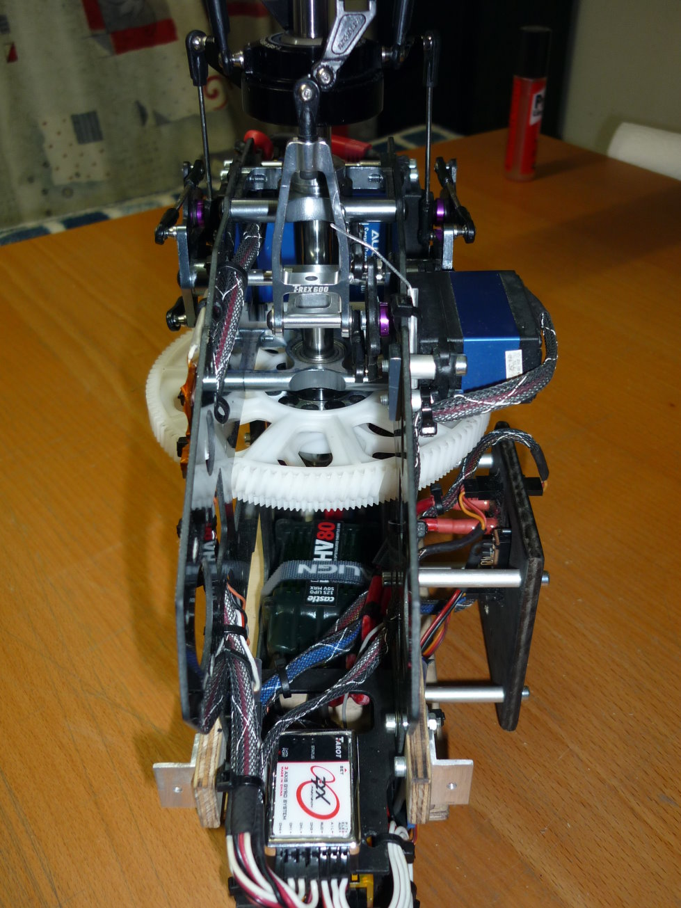 Alle alten Hobbyking Teile wurden gegen Align Komponenten getauscht. Mit dem neuen 600Pro Freilauf samt Zahnräder ( 12 - 112 ) komme ich auf meine gewünschte Drehzahl.