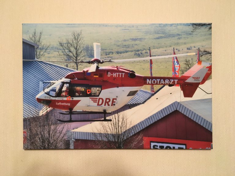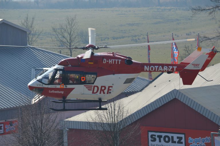 Hier dann erst einmal die Gesamtansicht der Maschine. Auffällig an der D-HTTT ist die vordere Dachantenne auf der Copilotenseite. Der Stab ist hier nämlich nach vorne geneigt. Bei fast allen anderen Maschinen ist er nach hinten geneigt. Hm, eigentlich bei allen. Ich kenne aktuell keine andere Maschine mit nach vorne geneigter Antenne. Warum das so ist, da muss ich mal bei dem Techniker der die betreute, oder einem Avioniker der DRF Luftrettung nach fragen, wenn ich wieder mal in Rheinmünster bin.