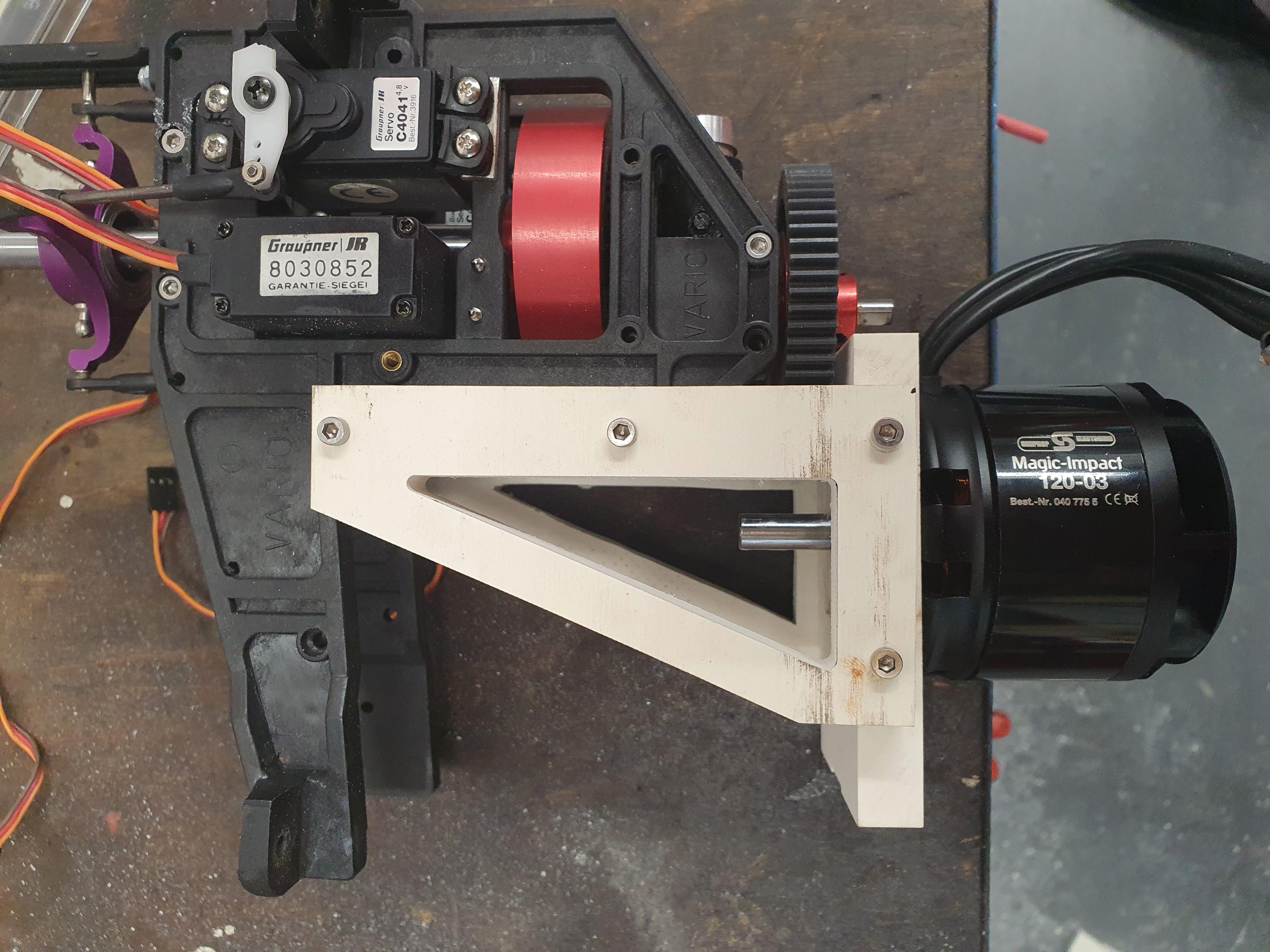 Das erste Provisorium um den Motor zu adaptieren. Die endgültige Version wird aus Alu gefräst.Angehängte Dateien