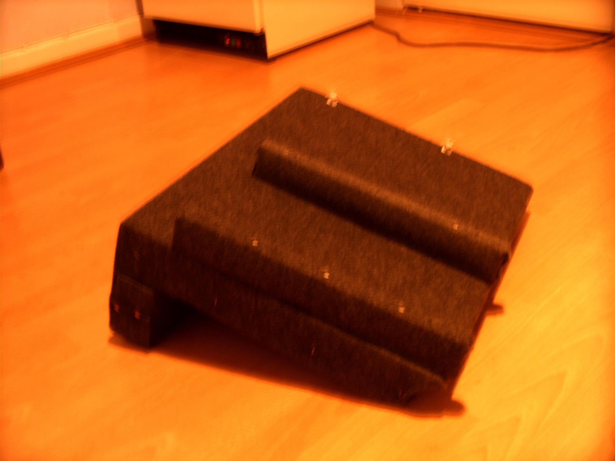 Habe mir einfach ein schrägliegende Platte gebaut und diese mit Teppich bezogen.